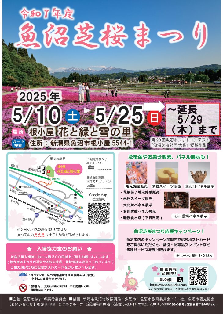 【2025年度 魚沼芝桜まつり開催期間は、5月10日(土曜日)~5月29日(木曜日)です。】