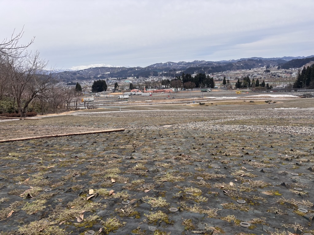 この日の最高気温は約20℃天気は曇り。芝桜広場の雪は完全に消えました。