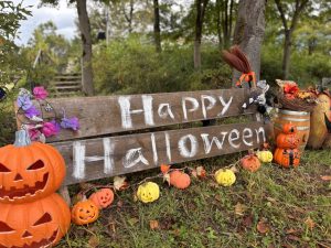 ハロウィン🎃👻の季節ですね! 八色の森公園、中央駐車場近くにハロウィン飾りをしました