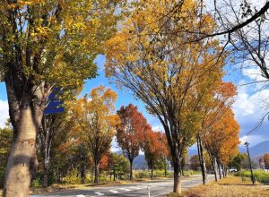 やや肌寒い風が吹き、街路樹の葉が風にゆられひらひらと落ちてきます🍂